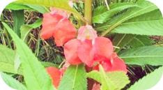 4. 꽃은 잎자루 밑에 달리고 7~8월에 개화한다. 꽃의 색깔은 연한 붉은색이지만 흰색이거나 보라색의 봉선화 꽃도 있다.